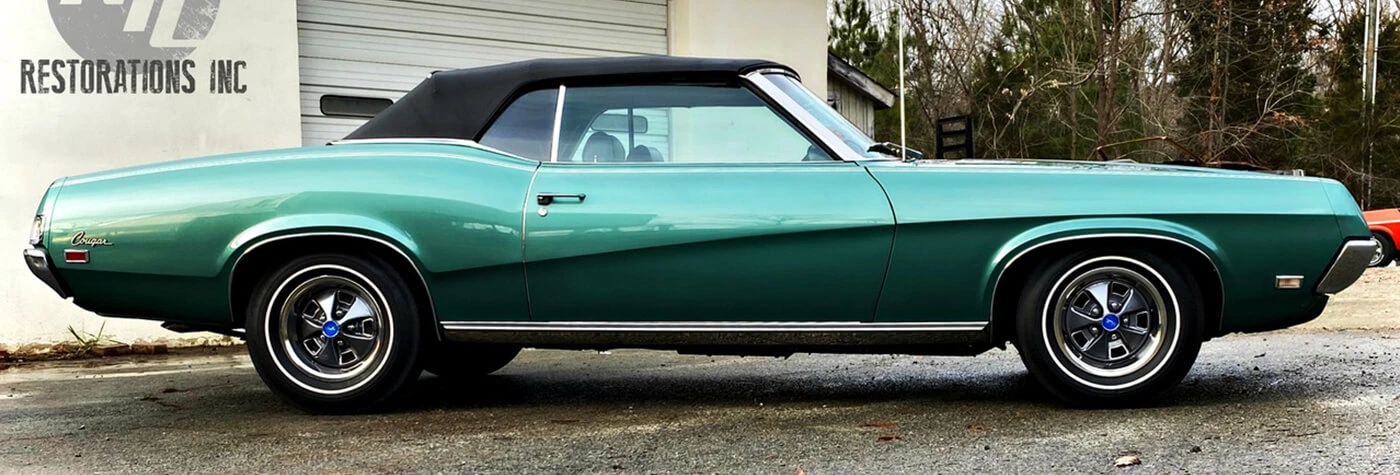 Answer: Lounging on the couch and looking at classic cars of course! And you know KTL Restorations, we’re here to please! Our team proudly presents another recent restoration beauty for your enjoyment — a 1969 XR-7 Mercury Cougar Convertible.